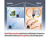 Zirkulator für effektive Luft-Umwälzung: Die Zirkulations-Technik sorgt für eine Verwirbelung der Raumluft, sodass sich wärmere und kühlere Luftschichten vermischen. So haben Sie im Sommer wie im Winter immer ein angenehmes Raumklima!